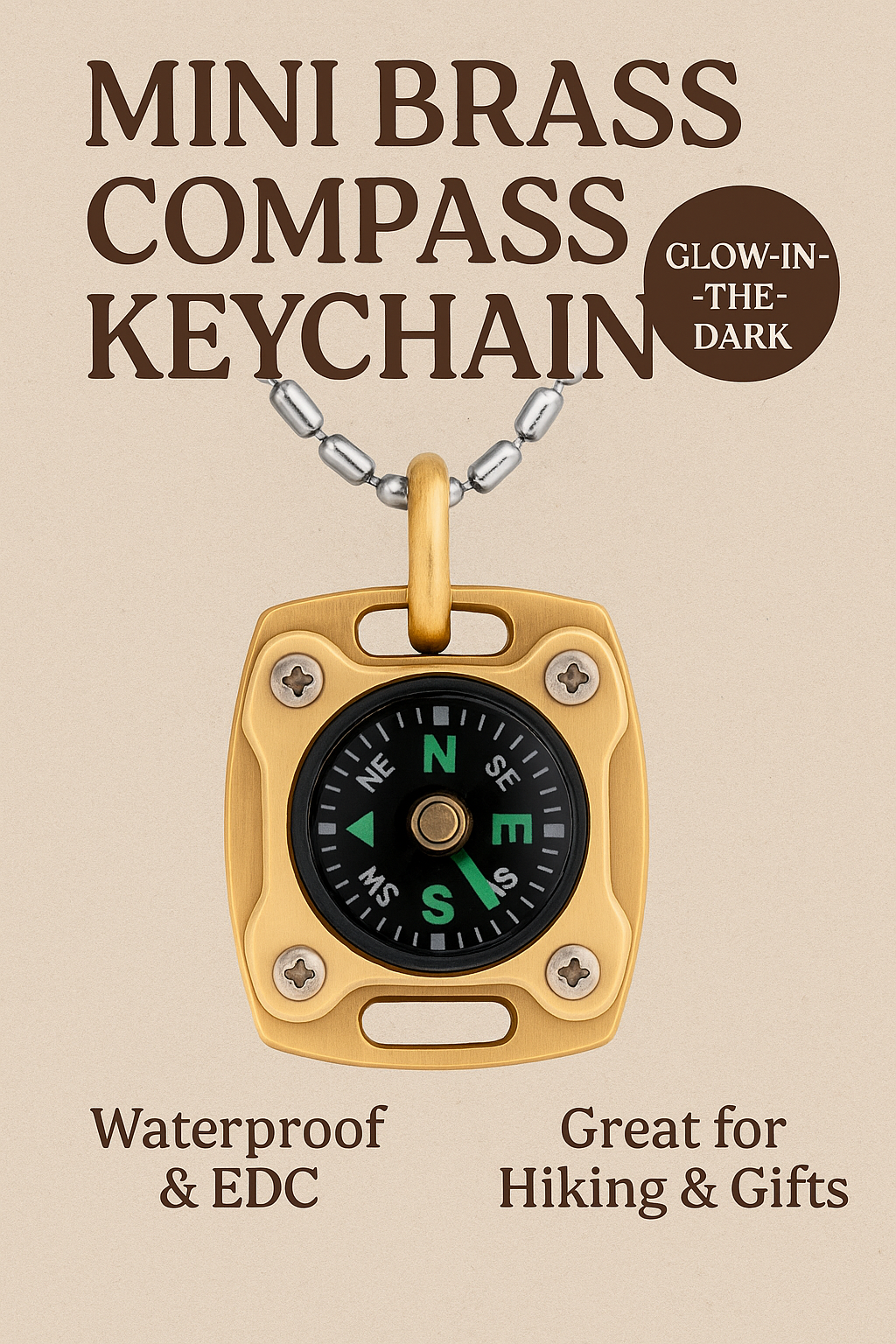 2. Mini Brass Compass Keychain – Glow-in-the-Dark EDC for Hiking & Gifts